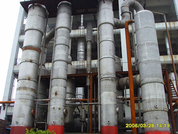 公司還涉足高濃度污水處理行業(yè)。經(jīng)過公司研發(fā)人員的努力,開發(fā)出了YBJXH型強(qiáng)制降膜循環(huán)多效、TVR、MVR蒸發(fā)器用于處理工業(yè)污水,并在聯(lián)邦制藥成都和內(nèi)蒙古公司、印度阿拉濱度、煙臺(tái)萬潤(rùn)精細(xì)化工等應(yīng)用成功。另在2002年山東魯洲集團(tuán)河南公司成功利用管束干燥機(jī)的廢熱制造了18噸廢熱蒸發(fā)器,用至現(xiàn)在。其中聯(lián)邦制藥成都公司選用的污水處理蒸發(fā)器有:50噸一套,35噸2套,12噸一套;聯(lián)邦制藥內(nèi)蒙古公司選用50噸污水處理蒸發(fā)器共3套;液糖車間YBJM30噸四效降膜蒸發(fā)器2套;YBJM20噸四效降膜蒸發(fā)器2套。印度阿拉濱度25噸1套、15噸3套、10噸1套、5噸1套;2.5噸8套等等。